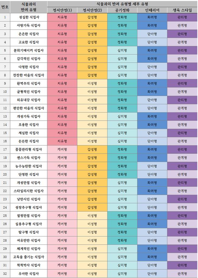 식물과의 반려 유형(32가지)