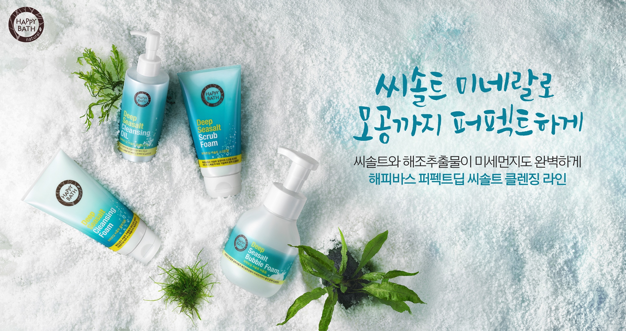 행복 감성을 전달하는 토탈 바디케어 전문 브랜드 해피바스가 마린파이버 해조성분으로 모공 속 각종 유해물질의 깨끗한 세정 효과로 많은 사랑을 받아온 ‘퍼펙트 딥 클렌징’ 라인에 천연 미네랄이 풍부한 해양심층수와 씨솔트 성분을 추가해 새롭게 업그레이드 한 ‘퍼펙트 딥 씨솔트 클렌징’ 4종을 출시했다.