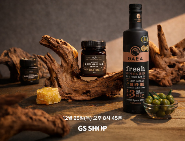 GS샵이 12월 25일(목) TV 홈쇼핑에서 글로벌 프리미엄 식품 `가이아(GAEA) 엑스트라버진 올리브오일`과 `메리비(Mary.B) 마누카꿀`을 선보인다